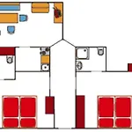 Konukların rahatlığı için her odada televizyon, oturma alanı, kanepe vardır.